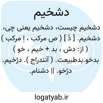 دشخیم. [ دُ ] ( ص مرکب، اِ مرکب ) ( از: دش، بد + خیم، خو ) بدخو.بدطبیعت. ( آنندراج ). دژخیم. دژخو. || دشنام. فحش. ( ناظم الاطباء ). || بهتان. || طعنه. ( ناظم الاطباء ). و رجوع به دژخیم شود.