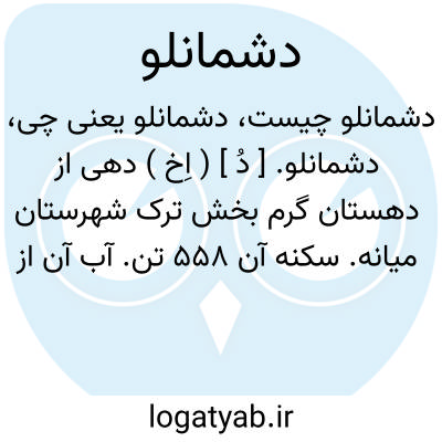 دشمانلو. [ دُ ] ( اِخ ) دهی از دهستان گرم بخش ترک شهرستان میانه. سکنه آن 558 تن. آب آن از چشمه. محصول آنجا غلات و نخود و عدس. ( از فرهنگ جغرافیایی ایران ج 4 ).