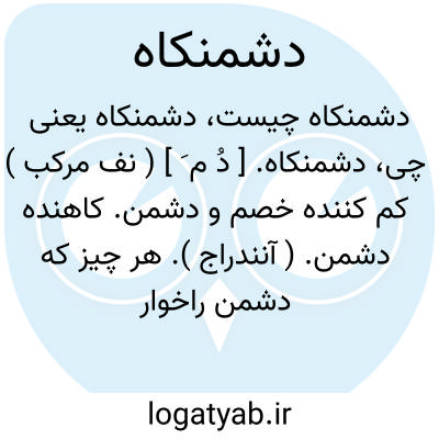 دشمنکاه. [ دُ م َ ] ( نف مرکب ) کم کننده خصم و دشمن. کاهنده دشمن. ( آنندراج ). هر چیز که دشمن راخوار و ذلیل گرداند. ( از ناظم الاطباء ):
