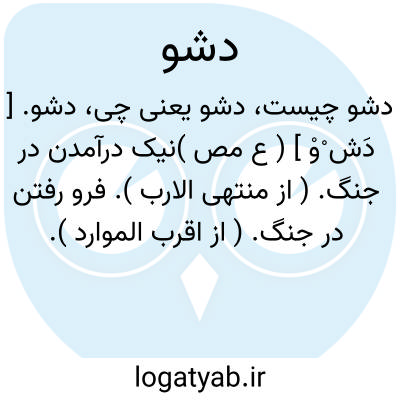 دشو. [ دَش ْوْ ] ( ع مص )نیک درآمدن در جنگ. ( از منتهی الارب ). فرو رفتن در جنگ. ( از اقرب الموارد ). دشوة. و رجوع به دشوة شود.