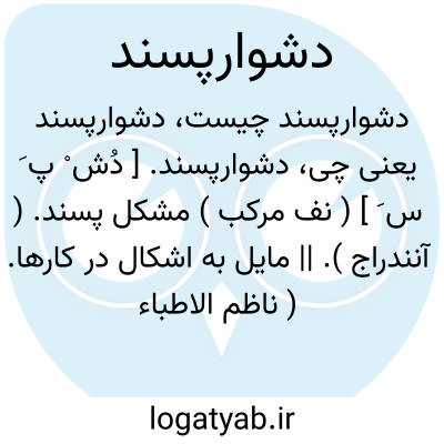 لغت نامه دهخدا دشوارپسند. [ دُش ْ پ َ س َ ] ( نف مرکب ) مشکل پسند. ( آنندراج ). || مایل به اشکال در کارها. ( ناظم الاطباء ).