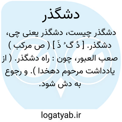 دشگذر. [ دُ گ ُ ذَ ] ( ص مرکب ) صعب العبور، چون: راه دشگذر. ( از یادداشت مرحوم دهخدا ). و رجوع به دش شود.