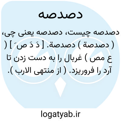 ( دصدصة ) دصدصة. [ دَ دَ ص َ ] ( ع مص ) غربال را به دست زدن تا آرد را فروریزد. ( از منتهی الارب ). دست به ماشو باززدن در حال بیختن. ( تاج المصادربیهقی ). زدن غربال را با دست. ( از اقرب الموارد ).