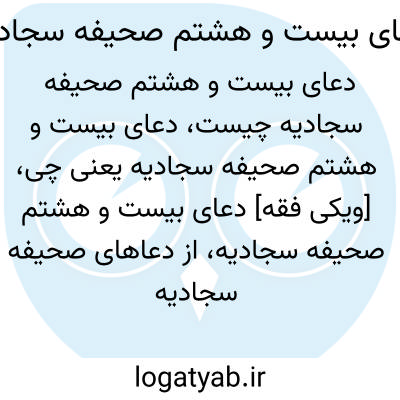 [ویکی شیعه] دعای بیست و هشتم صحیفه سجادیه، از دعاهای صحیفه سجادیه امام سجاد (ع). این دعا در ۱۲ فراز تنظیم شده و موضوع اصلی آن ترس از خدا و پناه بردن به اوست.