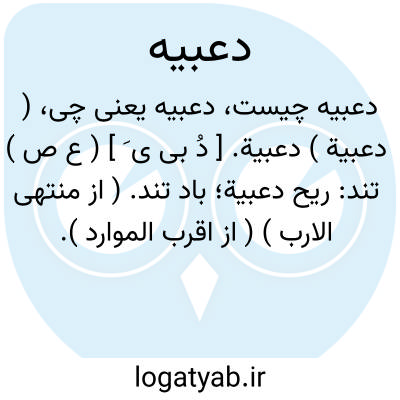 ( دعبیة ) دعبیة. [ دُ بی ی َ ] ( ع ص ) تند: ریح دعبیة؛ باد تند. ( از منتهی الارب ) ( از اقرب الموارد ).