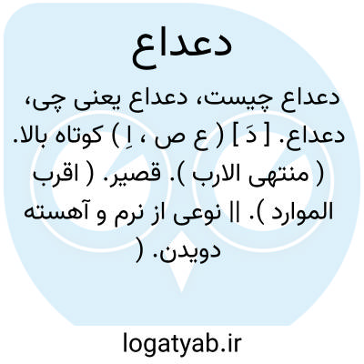 دعداع. [ دَ ] ( ع ص، اِ ) کوتاه بالا. ( منتهی الارب ). قصیر. ( اقرب الموارد ). || نوعی از نرم و آهسته دویدن. ( منتهی الارب ): سعی دعداع؛ دویدنی که در آن آهستگی و پیچیدن باشد. ( از اقرب الموارد ).