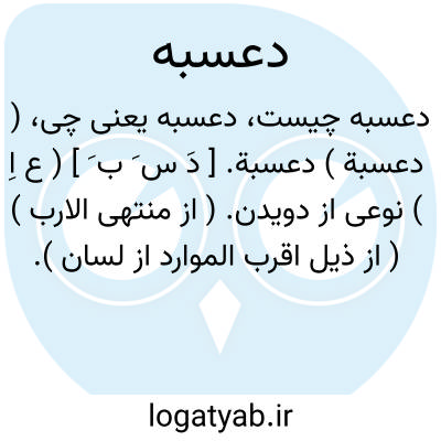 لغت نامه دهخدا ( دعسبة ) دعسبة. [ دَ س َ ب َ ] ( ع اِ ) نوعی از دویدن. ( از منتهی الارب ) ( از ذیل اقرب الموارد از لسان ).