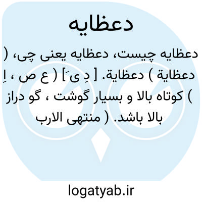 ( دعظایة ) دعظایة. [ دِ ی َ] ( ع ص، اِ ) کوتاه بالا و بسیار گوشت، گو دراز بالا باشد. ( منتهی الارب ). شخص بسیار گوشت خواه دراز و طویل باشد خواه کوتاه. ( از ذیل اقرب الموارد از لسان ).