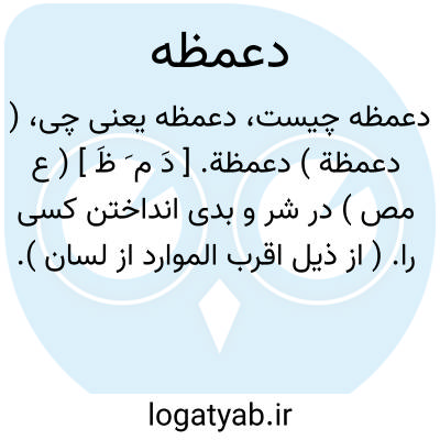 ( دعمظة ) دعمظة. [ دَ م َ ظَ ] ( ع مص ) در شر و بدی انداختن کسی را. ( از ذیل اقرب الموارد از لسان ). || داخل کردن همه نره را در شرم زن. ( از منتهی الارب ).
