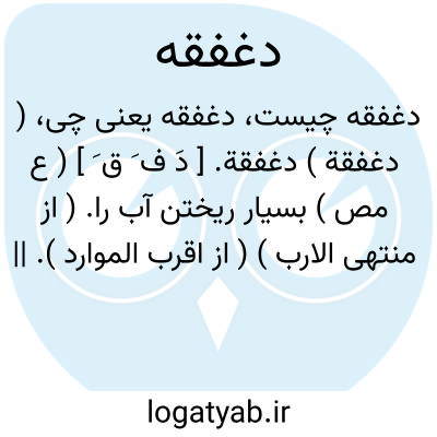 ( دغفقة ) دغفقة. [ دَ ف َ ق َ ] ( ع مص ) بسیار ریختن آب را. ( از منتهی الارب ) ( از اقرب الموارد ). || سخت باریدن در ابتدای باریدن. ( از منتهی الارب ). سخت شدن باران در ابتدای باریدنش. ( از اقرب الموارد ).