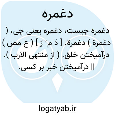 ( دغمرة ) دغمرة. [ دَ م َ رَ ] ( ع مص ) درآمیختن خلق. ( از منتهی الارب ). || درآمیختن خبر بر کسی. ( ناظم الاطباء ). مخلوط و مشوش کردن خبر بر کسی. ( از اقرب الموارد ). || عیب. ( منتهی الارب ). عیب کردن. ( از اقرب الموارد ).