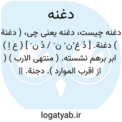 لغت نامه دهخدا ( دغنة ) دغنة. [ دُ غ ُن ْ ن َ / دُ ن َ ] ( ع اِ ) ابر برهم نشسته. ( منتهی الارب ) ( از اقرب الموارد ). دجنة. || ابر تاریک بی باران. ( منتهی الارب ) ( از اقرب الموارد ). و رجوع به دجنة شود.