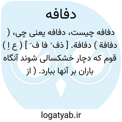 ( دفافة ) دفافة. [ دَف ْ فا ف َ ] ( ع اِ ) قوم که دچار خشکسالی شوند آنگاه باران بر آنها ببارد. ( از ذیل اقرب الموارد از تاج ).