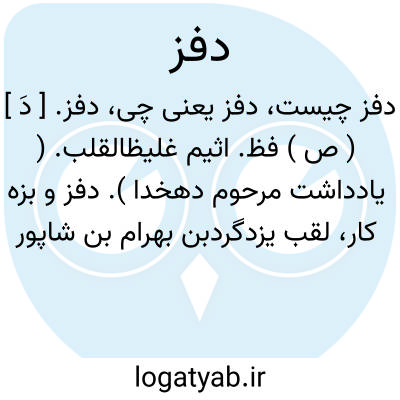دفز. [ دَ ] ( ص ) فظ. اثیم غلیظالقلب. ( یادداشت مرحوم دهخدا ). دفز و بزه کار، لقب یزدگردبن بهرام بن شاپور ساسانی. ( یادداشت مرحوم دهخدا ).