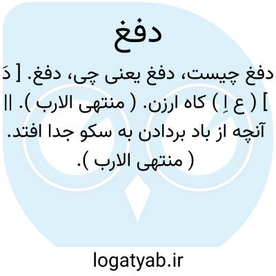 لغت نامه دهخدا دفغ. [ دَ ] ( ع اِ ) کاه ارزن. ( منتهی الارب ). || آنچه از باد بردادن به سکو جدا افتد. ( منتهی الارب ).