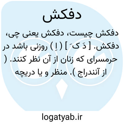 دفکش. [ دَ ک َ ] ( اِ ) روزنی باشد در حرمسرای که زنان از آن نظر کنند. ( از آنندراج ). منظر و یا دریچه ای که در اتاقهای زنانه قرار میدهند. ( ناظم الاطباء ).
