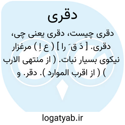 دقری. [ دَ ق َ را ] ( ع اِ ) مرغزار نیکوی بسیار نبات. ( از منتهی الارب ) ( از اقرب الموارد ). دقر. و رجوع به دقر شود. || ( اِخ ) مرغزاری است. ( از منتهی الارب ). روضه ای است در صحراء. ( از معجم البلدان ).روضه ای است نیکو و بسیارنبات. ( از اقرب الموارد ).