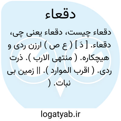 دقعاء. [ دَ ] ( ع ص ) ارزن ردی و هیچکاره. ( منتهی الارب ). ذرت ردی. ( اقرب الموارد ). || زمین بی نبات. ( منتهی الارب ) ( از اقرب الموارد ). || ( اِ ) خاک. ( منتهی الارب ). تراب. ( از اقرب الموارد ).