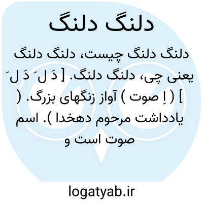 دلنگ دلنگ. [ دَ ل َ دَ ل َ ] ( اِ صوت ) آواز زنگهای بزرگ. ( یادداشت مرحوم دهخدا ). اسم صوت است و برای بازنمودن صدای زنگ و ناقوس و درای اشتران و مانند آن بکار می آید. ( از فرهنگ لغات عامیانه ). دلنگ ودلنگ. زلنگ وزلنگ. || ( ص مرکب ) آویخته که دایم حرکت کند. آونگان. ( لغت محلی شوشتر، نسخه خطی ).