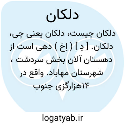 دلکان. [ دِ ] ( اِخ ) دهی است از دهستان آلان بخش سردشت، شهرستان مهاباد. واقع در 14هزارگزی جنوب باختری سردشت با 325 تن سکنه راه آن مالرو است. ( از فرهنگ جغرافیایی ایران ج 4 ).