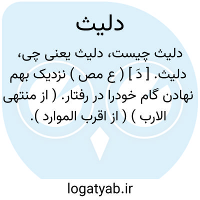 دلیث. [ دَ ] ( ع مص ) نزدیک بهم نهادن گام خودرا در رفتار. ( از منتهی الارب ) ( از اقرب الموارد ).