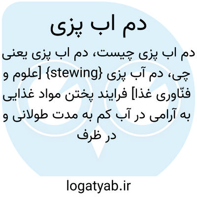 {stewing} [علوم و فنّاوری غذا] فرایند پختن مواد غذایی به آرامی در آب کم به مدت طولانی و در ظرف دربسته