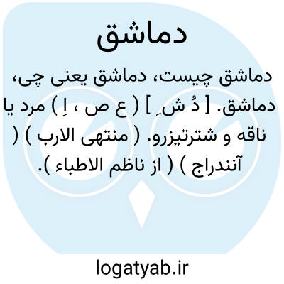 لغت نامه دهخدا دماشق. [ دُ ش ِ ] ( ع ص، اِ ) مرد یا ناقه و شترتیزرو. ( منتهی الارب ) ( آنندراج ) ( از ناظم الاطباء ).