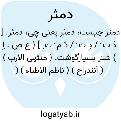 دمثر. [ دَ ث َ / دِ ث َ / دُ م َ ث ِ ] ( ع ص، اِ ) شتر بسیارگوشت. ( منتهی الارب ) ( آنندراج ) ( ناظم الاطباء ) ( از اقرب الموارد ).