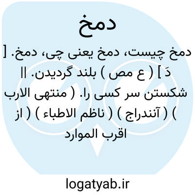 دمخ. [ دَ ] ( ع مص ) بلند گردیدن. || شکستن سر کسی را. ( منتهی الارب ) ( آنندراج ) ( ناظم الاطباء ) ( از اقرب الموارد ).