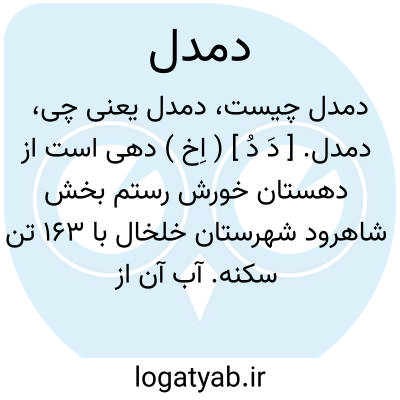 لغت نامه دهخدا دمدل. [ دَ دُ ] ( اِخ ) دهی است از دهستان خورش رستم بخش شاهرود شهرستان خلخال با 163 تن سکنه. آب آن از قنات است. ( از فرهنگ جغرافیایی ایران ج 4 ).