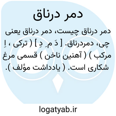 لغت نامه دهخدا دمردرناق. [ دَ م ِ دِ ] ( ترکی، اِ مرکب ) ( آهنین ناخن ) قسمی مرغ شکاری است. ( یادداشت مؤلف ).