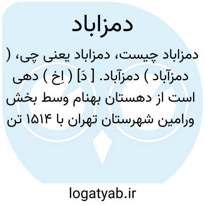 ( دمزآباد ) دمزآباد. [ دَ] ( اِخ ) دهی است از دهستان بهنام وسط بخش ورامین شهرستان تهران با 1514 تن سکنه. آب آن از قنات و راه آن اتومبیلرو است. ( از فرهنگ جغرافیایی ایران ج 1 ).