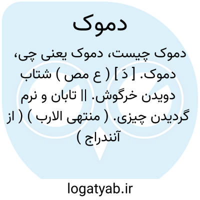 دموک. [ دَ ] ( ع مص ) شتاب دویدن خرگوش. || تابان و نرم گردیدن چیزی. ( منتهی الارب ) ( از آنندراج ) ( از اقرب الموارد ). نسوشدن. ( تاج المصادر بیهقی ). || بلند آمدن آفتاب. ( منتهی الارب ) ( آنندراج ) ( از اقرب الموارد ).