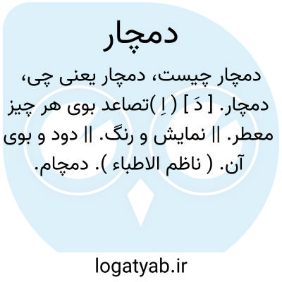 دمچار. [ دَ ] ( اِ )تصاعد بوی هر چیز معطر. || نمایش و رنگ. || دود و بوی آن. ( ناظم الاطباء ). دمچام.