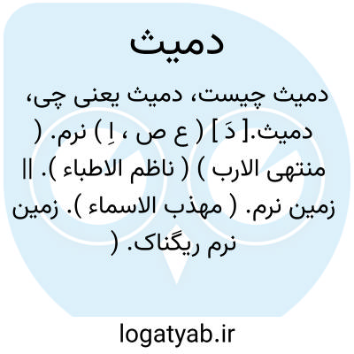دمیث.[ دَ ] ( ع ص، اِ ) نرم. ( منتهی الارب ) ( ناظم الاطباء ). || زمین نرم. ( مهذب الاسماء ). زمین نرم ریگناک. ( از اقرب الموارد ). || نرم خو. ( منتهی الارب ) ( ناظم الاطباء ). مرد نرم خو. ( مهذب الاسماء ).