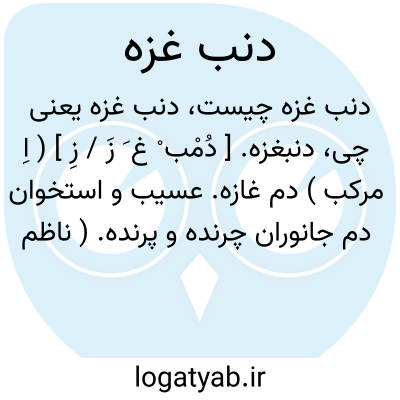دنبغزه. [ دُمْب ْ غ َ زَ / زِ ] ( اِ مرکب ) دم غازه. عسیب و استخوان دم جانوران چرنده و پرنده. ( ناظم الاطباء ) ( از برهان ) ( از لغت فرس اسدی ) ( از آنندراج ). فقره زبرین از فقار ظَهْر در حیوان و انسان. ( یادداشت مؤلف ). دمغزه. ( ناظم الاطباء ). رجوع به دمغزه شود.
