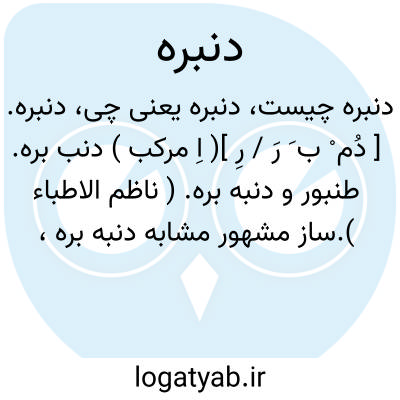 دنبره. [ دُم ْ ب َ رَ / رِ ]( اِ مرکب ) دنب بره. طنبور و دنبه بره. ( ناظم الاطباء ).ساز مشهور مشابه دنبه بره، یک بای آن محذوف شده و دنبره مانده، و عرب با تبدیل دال به طاء به صورت طنبوره معرب ساخته است. ( از برهان ) ( از آنندراج ). طنبور، و آن سازی است که مطربان زنندش. ( شرفنامه منیری ).