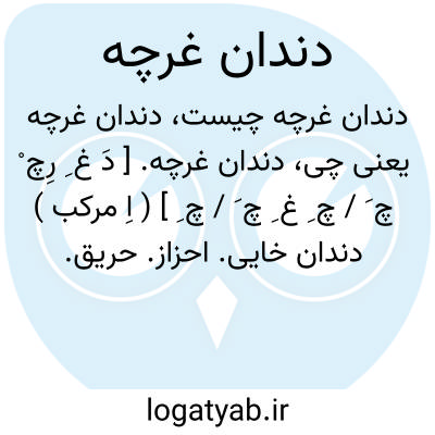 دندان غرچه. [ دَ غ ِ رِچ ْ چ َ / چ ِ غ ِ چ َ / چ ِ ] ( اِ مرکب ) دندان خایی. احزاز. حریق. ساییده شدن دندانهای زبرین و زیرین به یکدیگر چنانکه دندانهای صاحب کرم معده در خواب و مانند آن. عمل فشرده شدن یا فشردن دندانها بر یکدیگر و برآمدن آواز از آن بر اثر خشم در بیداری و علامت کرم در معده، در خواب. در خراسان ( گناباد ) دندان غریچه گویند. ( یادداشت مؤلف ). دندان غروچه. دندان کروچه. صریرالاسنان. ( از قانون ابن سینا ).