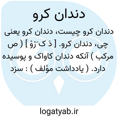 دندان کرو. [ دَ ک َرْوْ ] ( ص مرکب ) آنکه دندان کاواک و پوسیده دارد. ( یادداشت مؤلف ):
