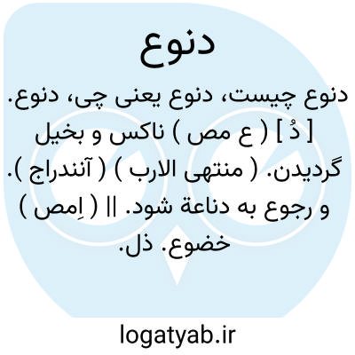 دنوع. [ دُ ] ( ع مص ) ناکس و بخیل گردیدن. ( منتهی الارب ) ( آنندراج ). و رجوع به دناعة شود. || ( اِمص ) خضوع. ذل. خواری. ( یادداشت مؤلف ).