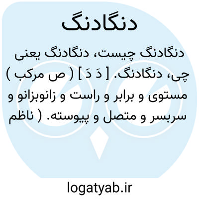 دنگادنگ. [ دَ دَ ] ( ص مرکب ) مستوی و برابر و راست و زانوبزانو و سربسر و متصل و پیوسته. ( ناظم الاطباء ). دو چیز مساوی و هم وزن. ( از فرهنگ شعوری ج 1 ورق 418 ). || ( اِ صوت ) دنگ دنگ. درنگادرنگ. ترنگاترنگ.