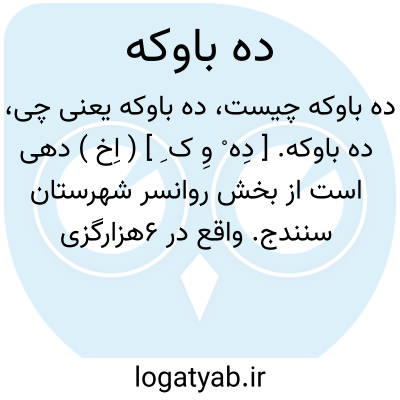 ده باوکه. [ دِه ْ وِ ک ِ ] ( اِخ ) دهی است از بخش روانسر شهرستان سنندج. واقع در 6هزارگزی شمال روانسر کنار راه فرعی خراجیان. سکنه آن 191 تن می باشد. آب آن از چشمه و چاه تأمین می شود. راه آن تابستان اتومبیل می توان برد. ( از فرهنگ جغرافیایی ایران ج 5 ).