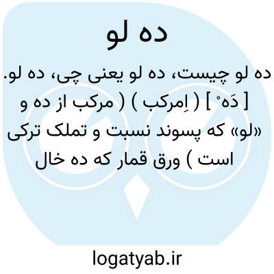 ده لو. [ دَه ْ ] ( اِمرکب ) ( مرکب از ده و «لو» که پسوند نسبت و تملک ترکی است ) ورق قمار که ده خال دارد. ( یادداشت مؤلف ).، دهلو. [ دِ ] ( اِخ ) نام شهری در هندوستان که دهلی نیز گویند. ( ناظم الاطباء ). صورتی از دهلی و منسوب به آن دهلوی است: سخن زان گونه گفتم من بلند امروز در دهلو که از خواب گران بیدار کردستم به شروانش.امیرخسرو دهلوی ( از آنندراج ).سریری که شیرین و خسرو زدند ز دارای شروان و دهلو زدند.ظهوری ( از آنندراج ).و رجوع به دهلی شود.
