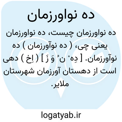 ( ده نوآورزمان ) ده نوآورزمان. [ دِه ْ ن ُ وَ زَ ] ( اِخ ) دهی است از دهستان آورزمان شهرستان ملایر. واقع در 28هزارگزی باختر شهر ملایر. سکنه آن 688 تن. آب آن از قنات تأمین می شود. راه آن اتومبیل رو. ( از فرهنگ جغرافیایی ایران ج 5 ).
