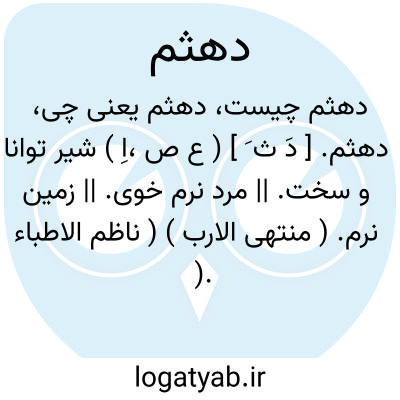 دهثم. [ دَ ث َ ] ( ع ص،اِ ) شیر توانا و سخت. || مرد نرم خوی. || زمین نرم. ( منتهی الارب ) ( ناظم الاطباء ).