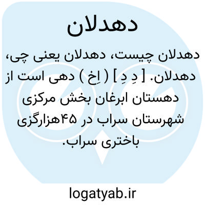 دهدلان. [ دِ دِ ] ( اِخ ) دهی است از دهستان ابرغان بخش مرکزی شهرستان سراب در 45هزارگزی باختری سراب. آب آنجا از چشمه تأمین می شود.سکنه آن 223 تن. ( از فرهنگ جغرافیایی ایران ج 4 ).