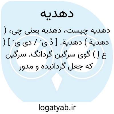 ( دهدیة ) دهدیة. [ دُ ی َ / دی ی َ ] ( ع اِ ) گوی سرگین گردانگ. سرگین که جعل گردانیده و مدور ساخته باشد؛ دهدیةالجعل؛ گوی گوه گردان. ( منتهی الارب ) ( ناظم الاطباء ). دهدوة.