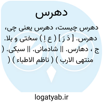 دهرس. [ دَ رَ ] ( ع اِ ) سختی و بلا. ج، دهارس. || شادمانی. || سبکی. ( منتهی الارب ) ( ناظم الاطباء ) ( آنندراج ).