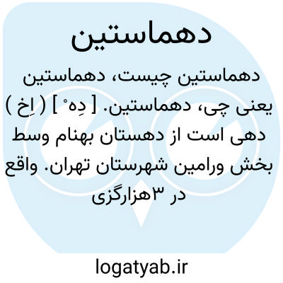 دهماستین. [ دِه ْ ] ( اِخ ) دهی است از دهستان بهنام وسط بخش ورامین شهرستان تهران. واقع در 3هزارگزی ورامین. آب آن از قنات تأمین می شود. سکنه آن 104 تن. راه آن اتومبیل رو. ( از فرهنگ جغرافیایی ایران ج 1 ).