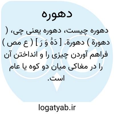 ( دهورة ) دهورة. [ دَهَْ وَ رَ ] ( ع مص ) فراهم آوردن چیزی را و انداختن آن را در مغاکی میان دو کوه یا عام است. || ریخ زدن. || پر و بی اماله خواندن کلام را. || راندن و دفع نمودن دیوار را پس افتادن. || بزرگ کردن لقمه را. ( منتهی الارب ) ( از آنندراج ) ( ناظم الاطباء ). لقمه بزرگ کردن. ( دهار ) ( المصادر زوزنی ).
